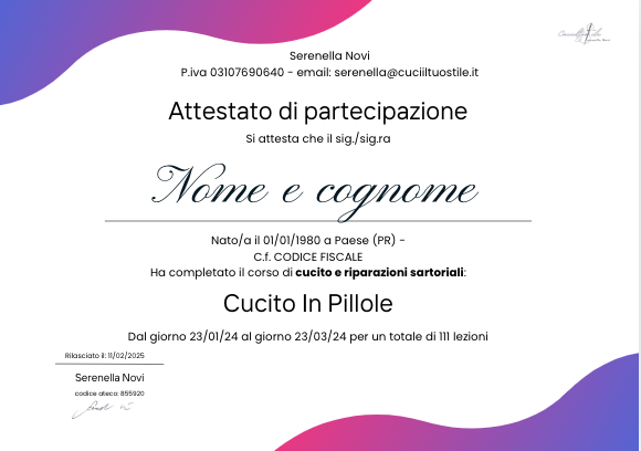 Alla fine del corso riceverai un attestato di partecipazione nominale,